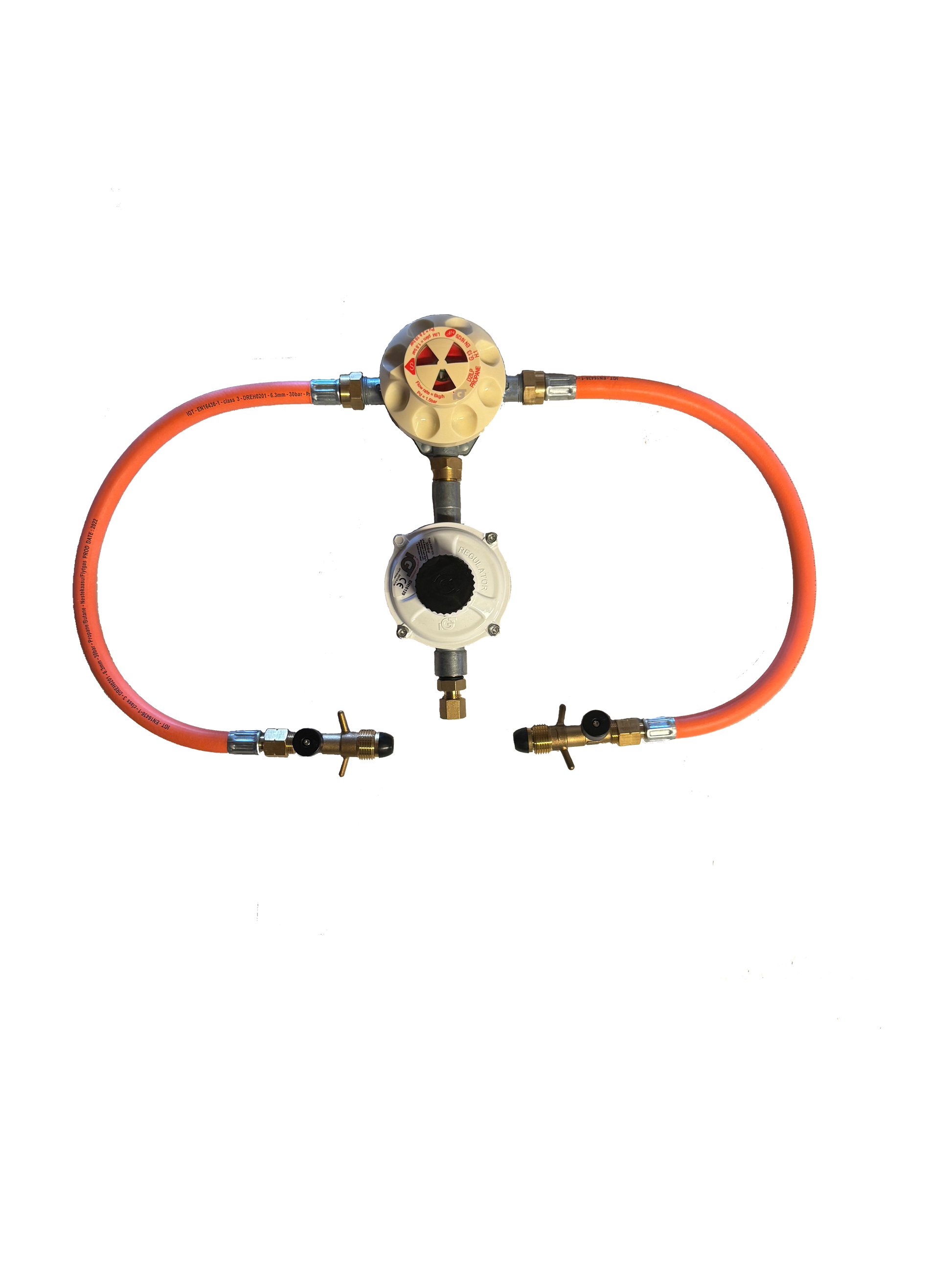 Automatisk flaskomkopplare med integrerad reduceringsventil på 30 mbar. Omkopplaren byter automatiskt mellan flaskorna så att driftsstopp inte förekommer. Perfekt för restauranger, i fritidshuset eller husvagnen!