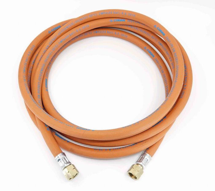 5m slang med 3/8"v (vänstergänga) anslutningar i båda ändar. Passar ofta ogräsbrännare, gasolkanoner mm.